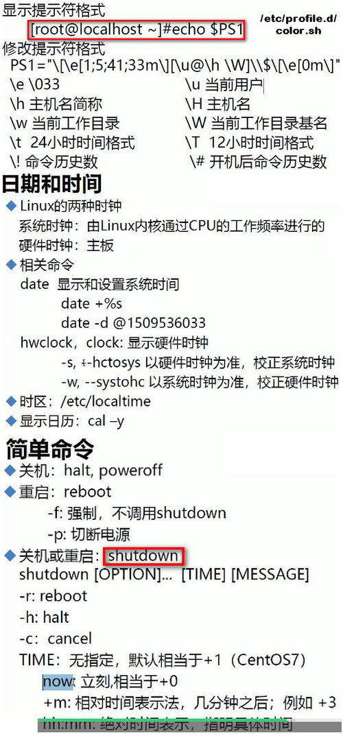1 2 3 4 5 echo $PS1 vim /etc/profile.d/color.sh PS1="\[\033[1;5;41;33m\][\u@\h\W\t\!]\\$\[\033[0m\]" \u 当前用户 \H 主机名 \h 主机名简称 \w 当前工作目录echo -e "\e[字体格式;背景色;前景色m字符串\e[0m"
