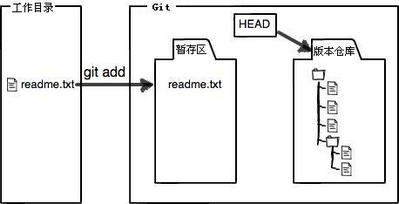- 暂存区域(stage/index):将文件的快照放入暂存区域, 一般存放在