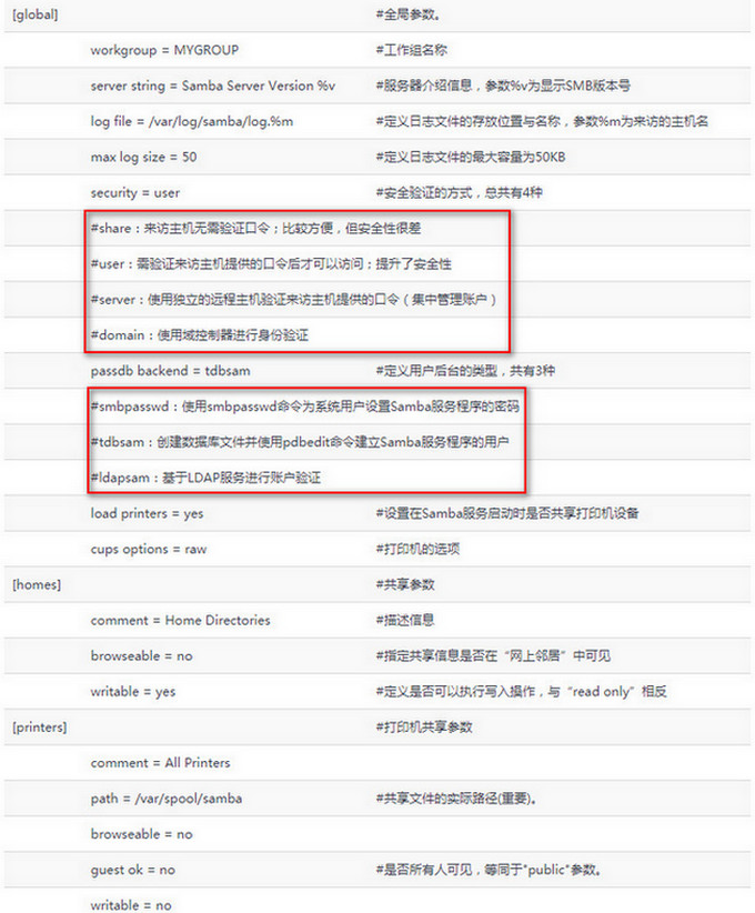 1 2 3 4 5 6 7 8 9 10 11 12 [root@xy ~]# yum install samba [root@xy ~]# mv /etc/samba/smb.conf /etc/samba/smb.conf.bak [root@xy ~]# cat /etc/samba/smb.conf.bak |grep -v "#" |grep -v ";" |grep -v "^$" > /etc/samba/smb.conf [root@xy ~]# cat /etc/samba/smb.conf 1 [database] 2 comment = Do not arbitrarily modify the database 4 path = /home/database 5 public = no 6 browseable=no 7 writable = yes 8 guest ok = yes