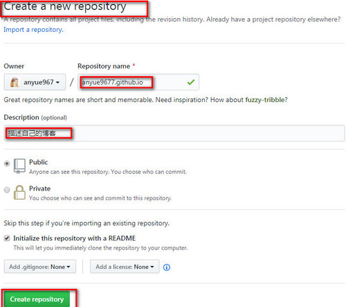 基础搭建 创建一个仓库,用于存放个人博客文件