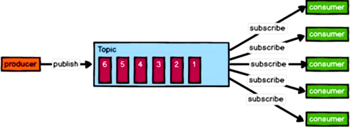 发布-订阅模式,发布到Topic数据不会清除,分为push / pull;